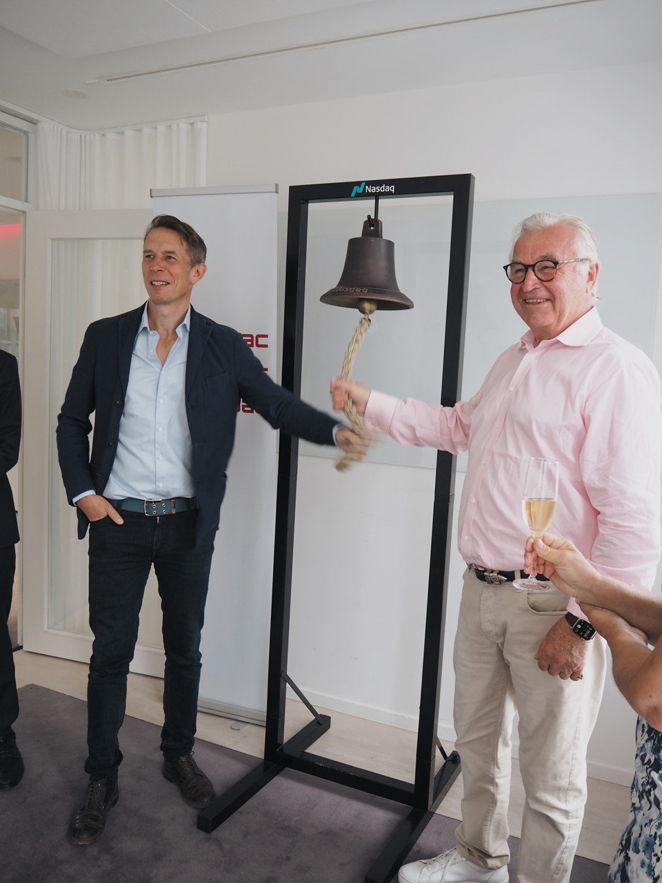 John Hedberg (VD) & Sven Hagströmer (styrelseordförande) ringer i klockan på Creades kontor